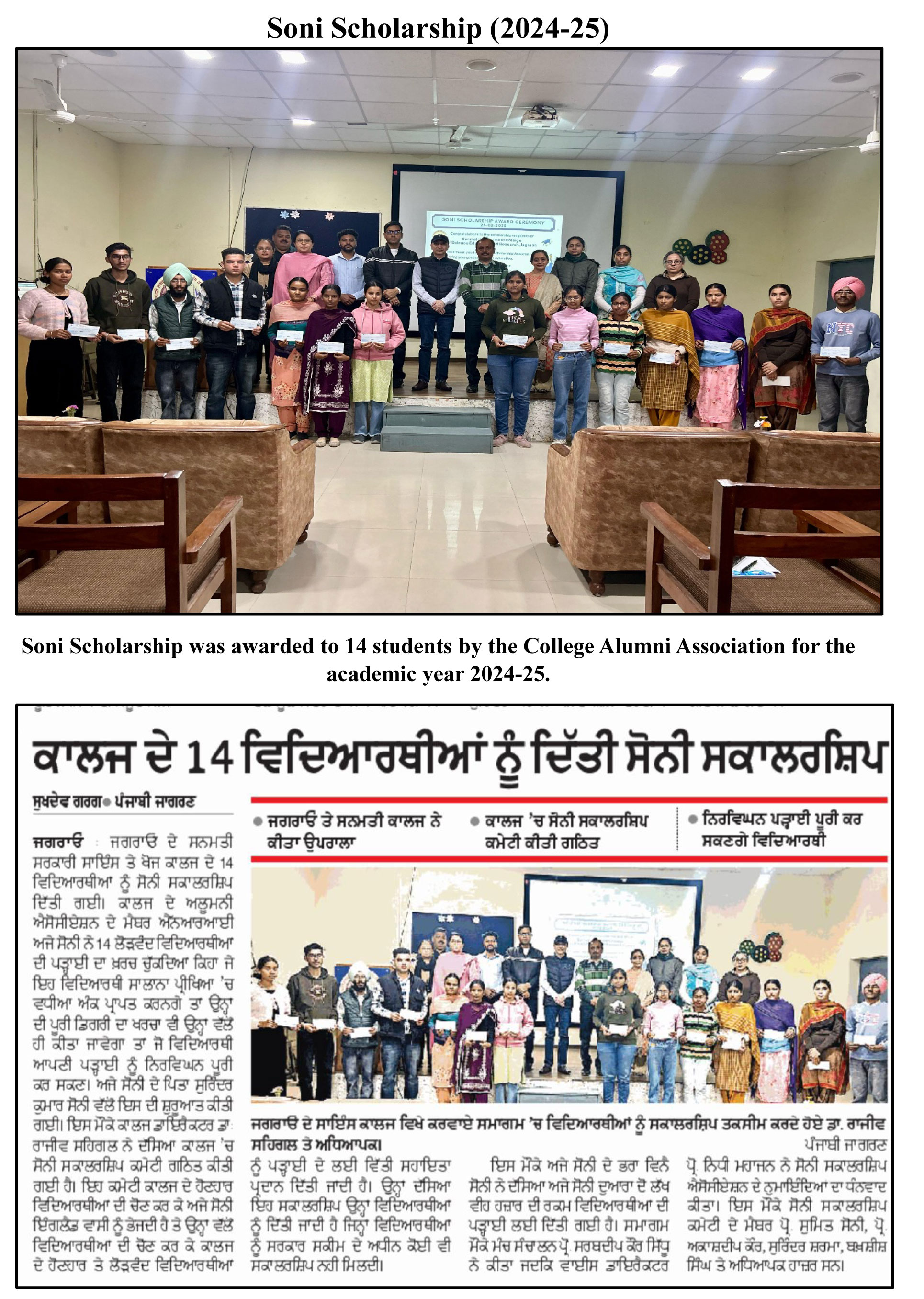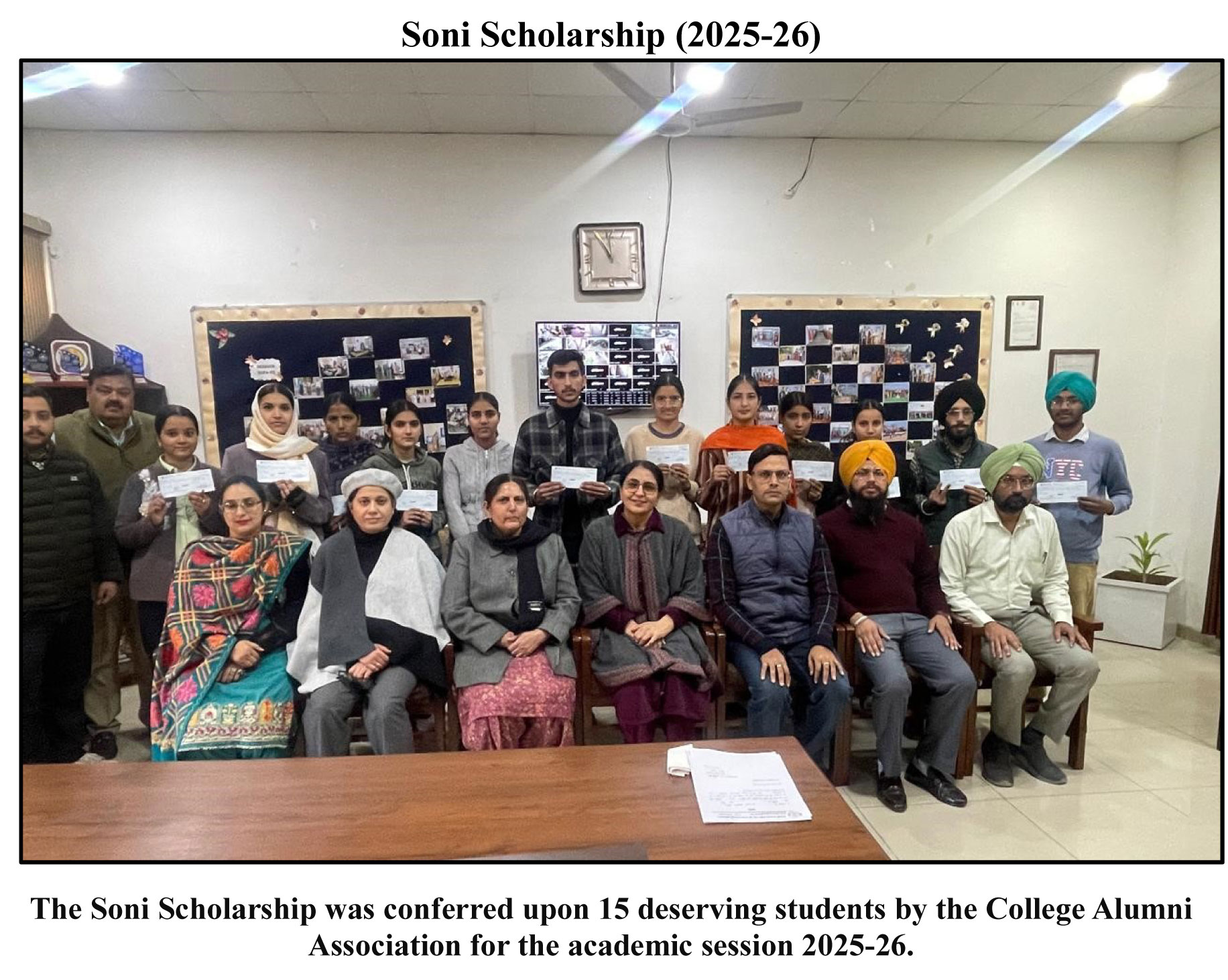 Soni scholarship worth 16062/- each.Prof.Kirpal kaur, college director exhorted the students to